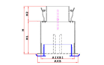 | B x H | Code | Ø Raccordement | A | B | A1 | B1 | H | H1 | H2 | ||