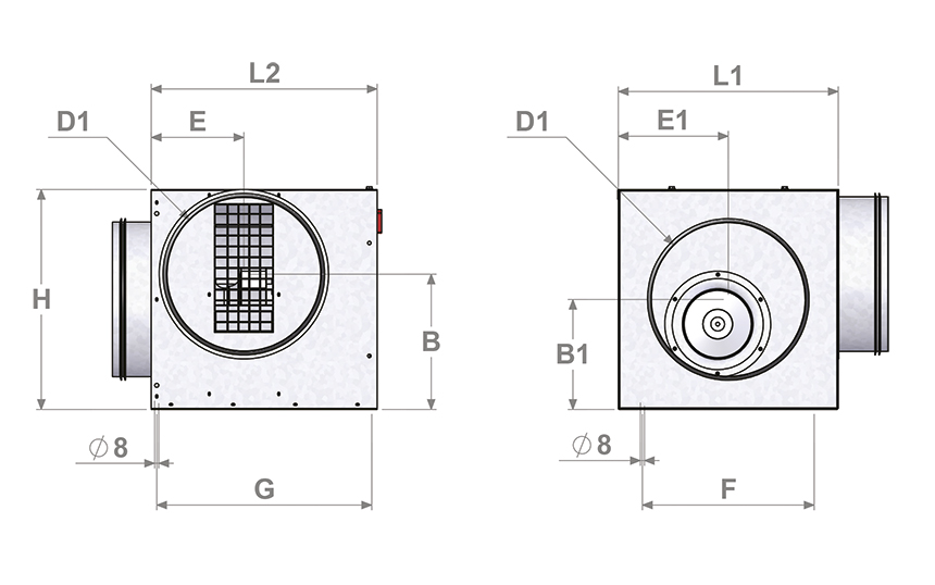 Tous ces appareils sont réalisés en tôle d’acier galvanisé, régulation par potentiomètre permettant un fonctionnement adapté aux besoins de l'installation, d’un interrupteur de proximité, et de piquages double joints à lèvre. Cet appareil n’est pas équipé de pressostat.